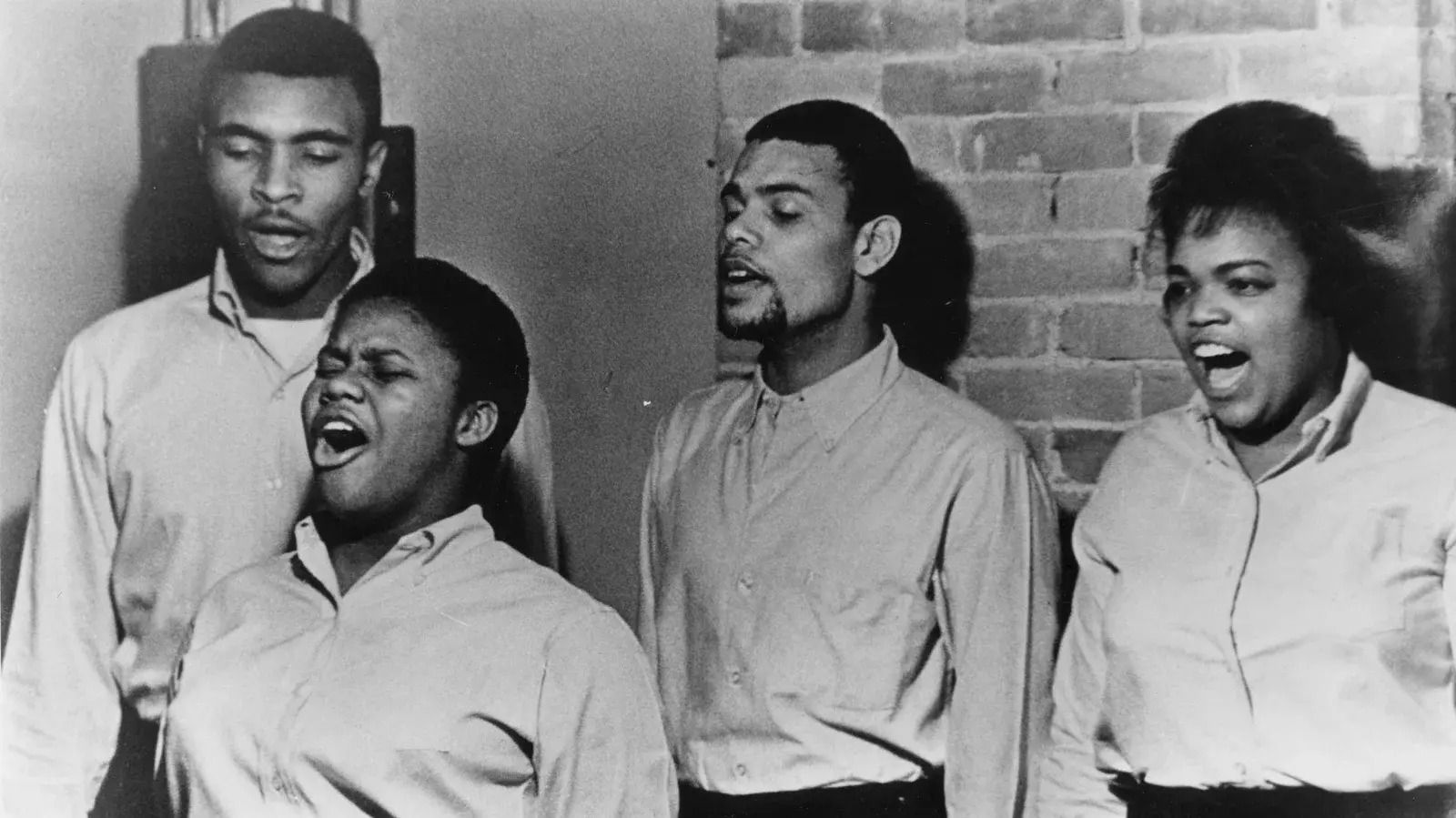 Photograph of The Freedom Singers, a quartet that blended gospel with protest songs and chants to propel the civil rights movement of the 1960s. Photo Source: NPR.